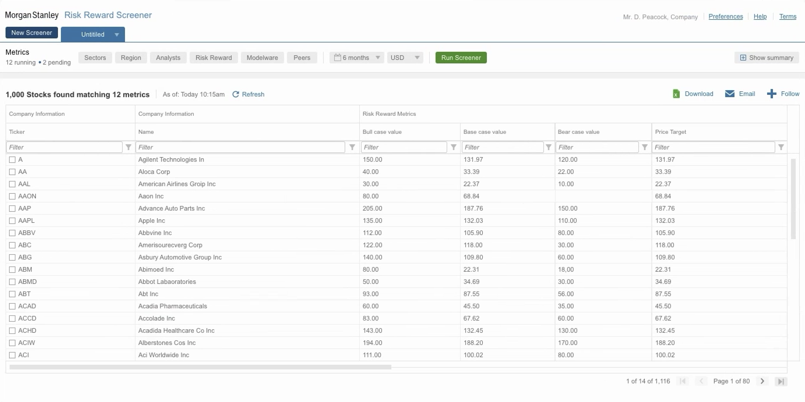 Stage 1 — Default screener with results table